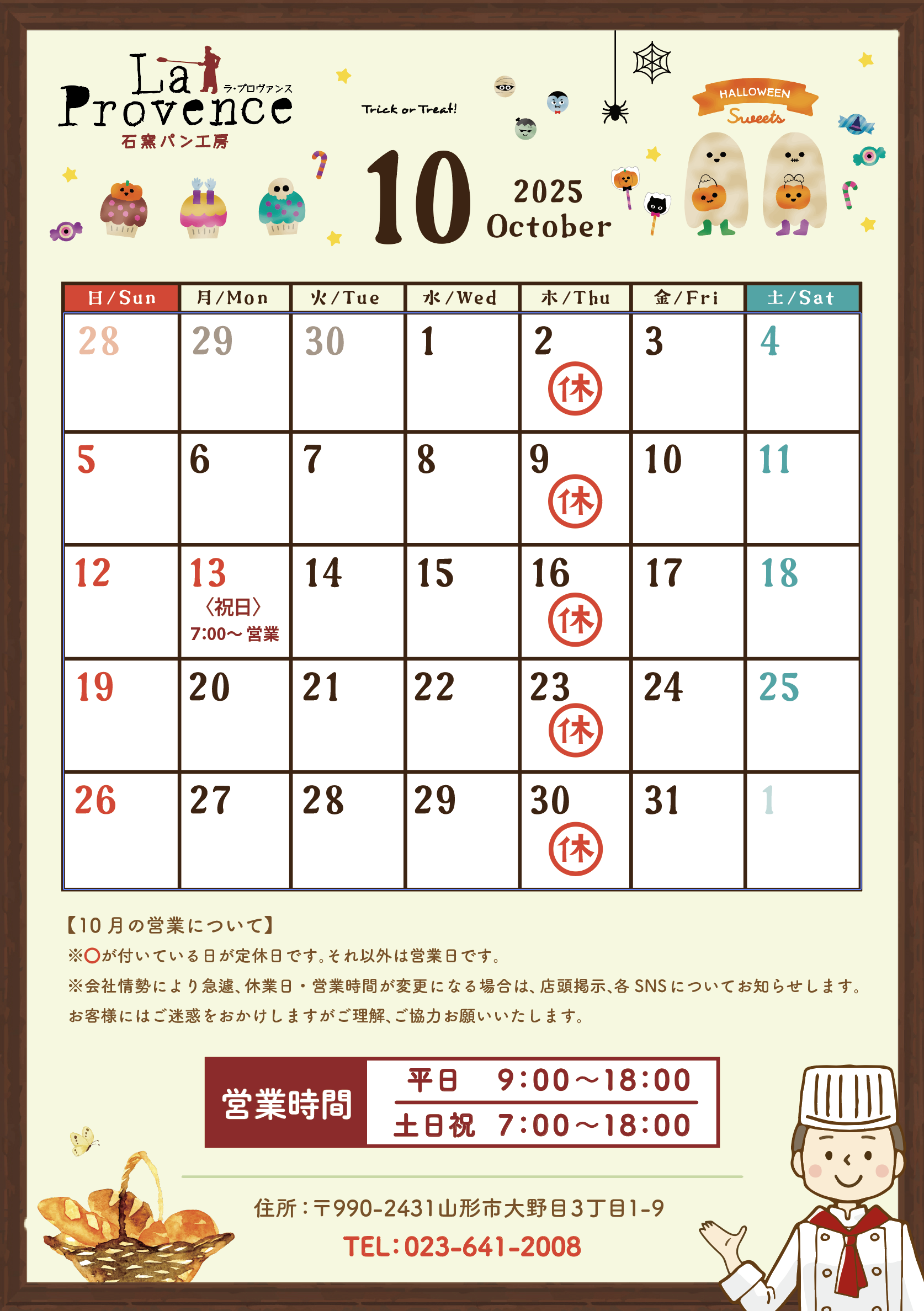 【10月の営業について】